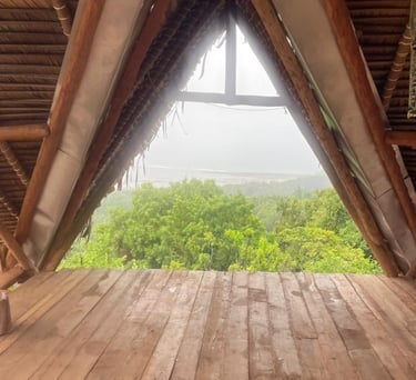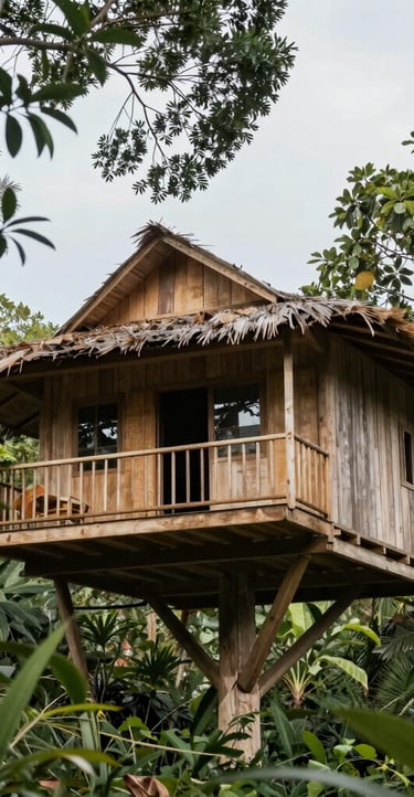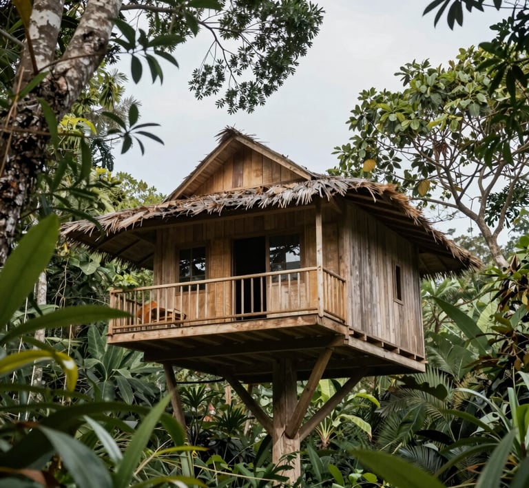 Une cabane perchée dans les branches, cachée entre ciel et feuillage, idéale pour se réveiller au doux ballet des colibris et à la lumière filtrée du matin.
