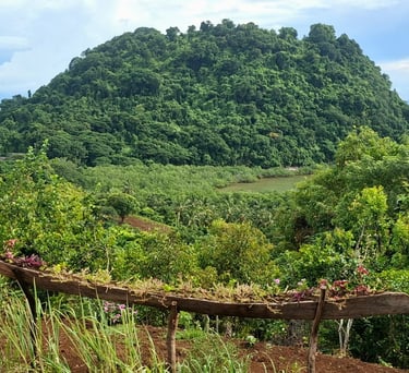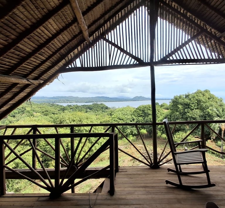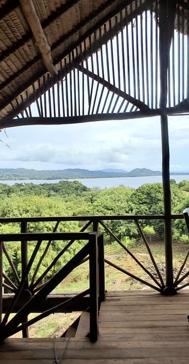Un chalet simple et chaleureux , posé sur les hauteurs, avec une vue panoramique sur l'île et le lagon, idéal pour se réveiller face à la lumière douce du matin.